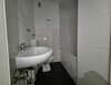 - Anthrazite Boden- und weiße Wandfliesen im Bad