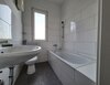 - Anthrazite Boden- und weiße Wandfliesen im Bad