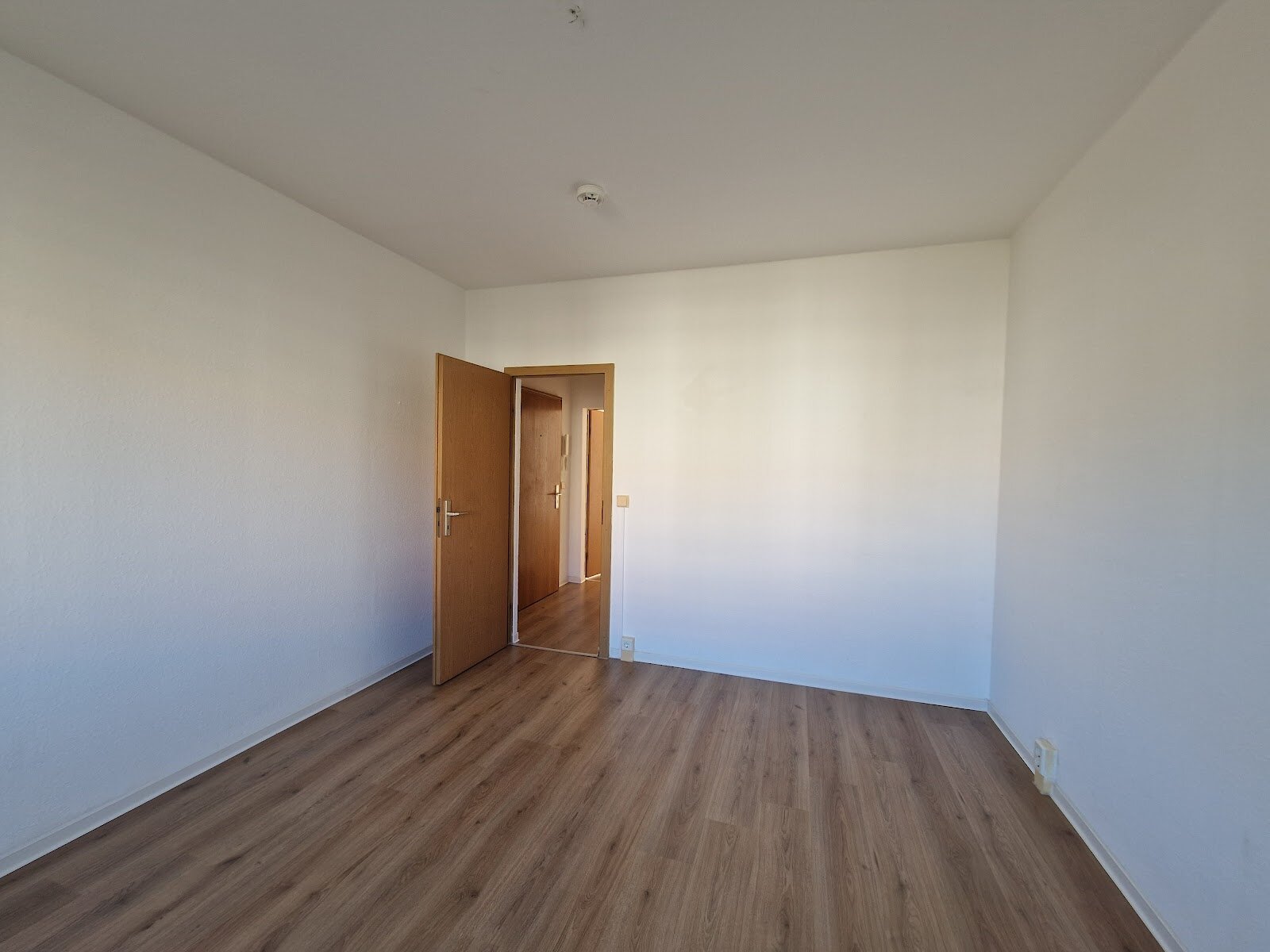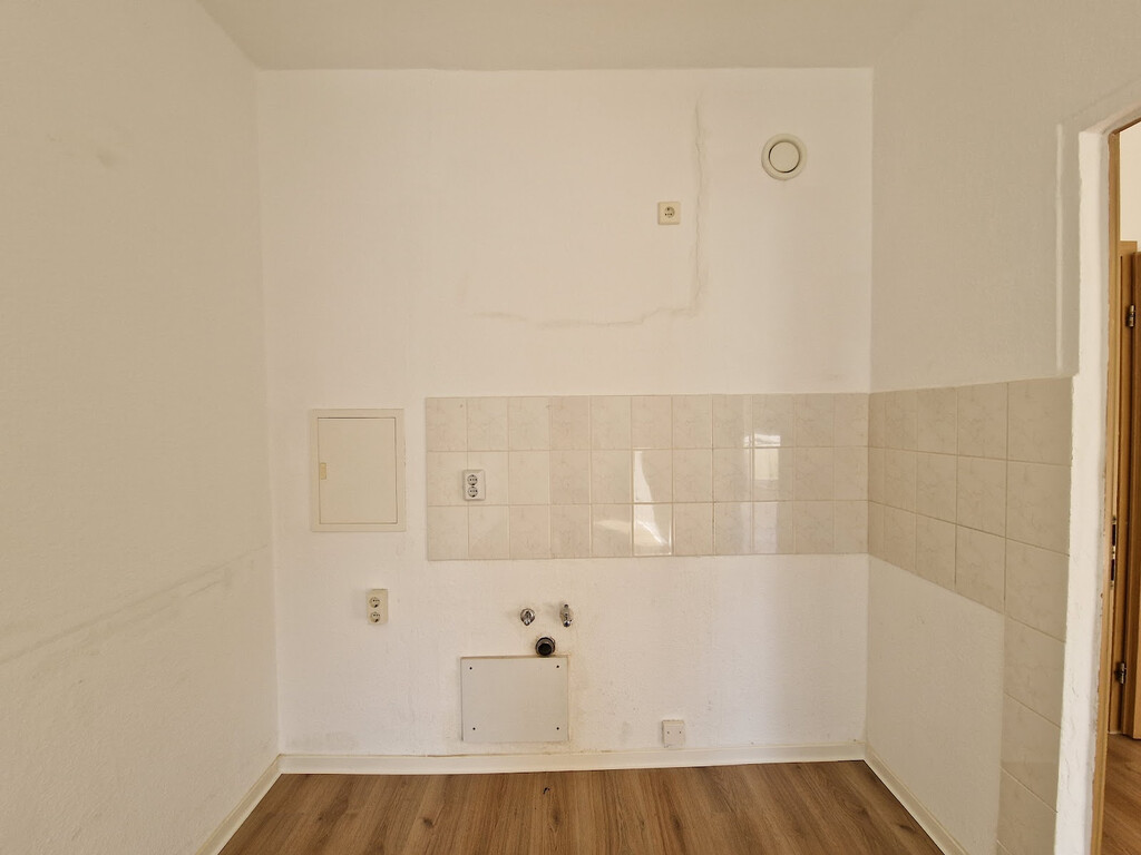 - Laminat-Bodenbelag und Raufasertapete in den Wohnräumen