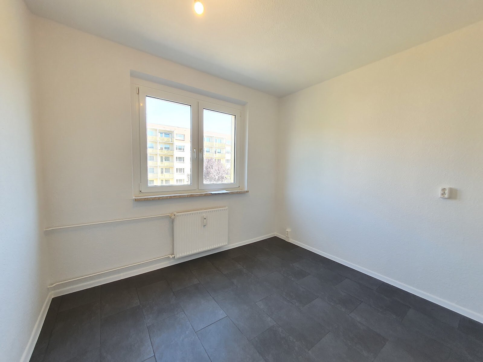 - PVC-Bodenbelag und Raufasertapete in den Wohnräumen