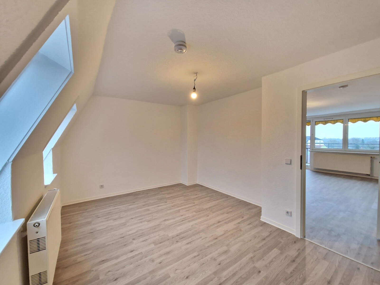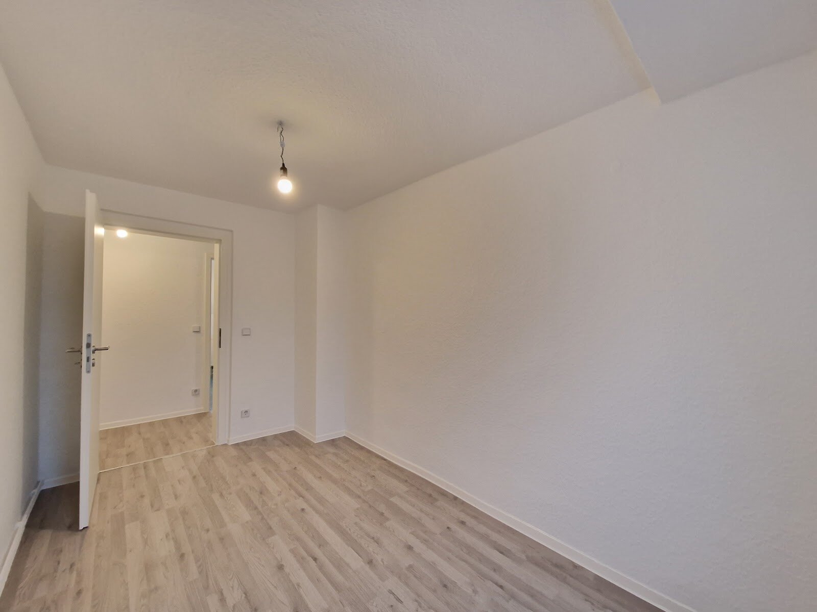 - Laminat- Bodenbelag und Raufasertapete in den Wohnräumen