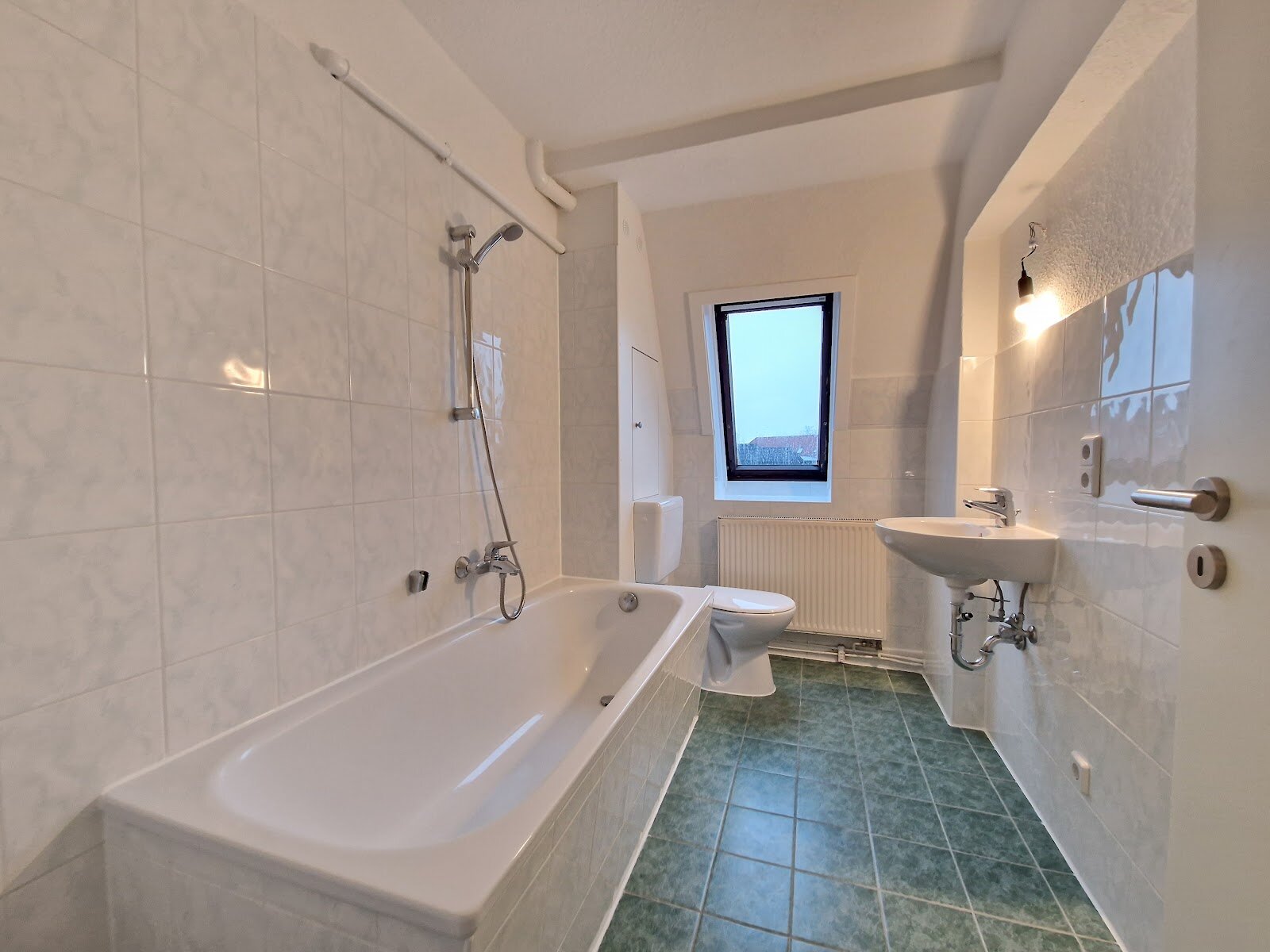 - Tageslichtbad mit Badewanne und Waschmaschinenanschluss