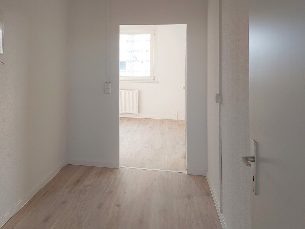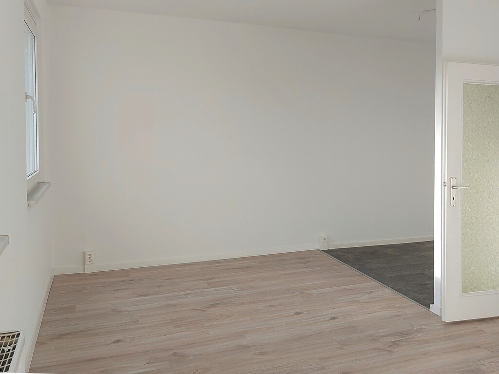 - Laminat - Bodenbelag und Raufasertapete in den Wohnräumen