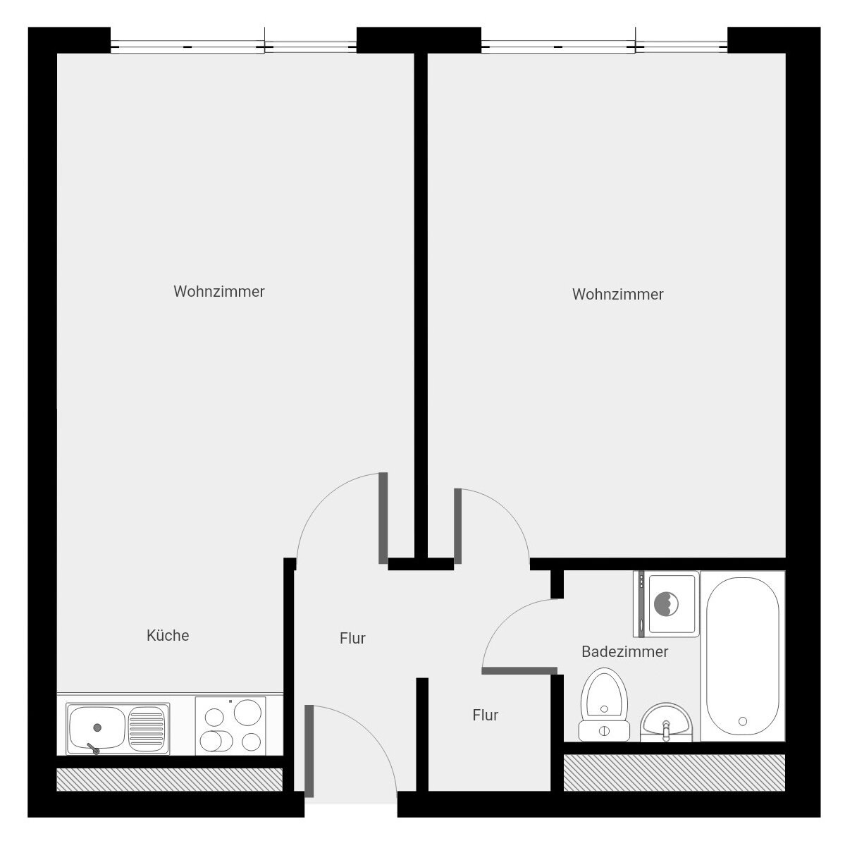 Die 2-Zimmer-Wohnung verteilt sich auf ca. 44 m²