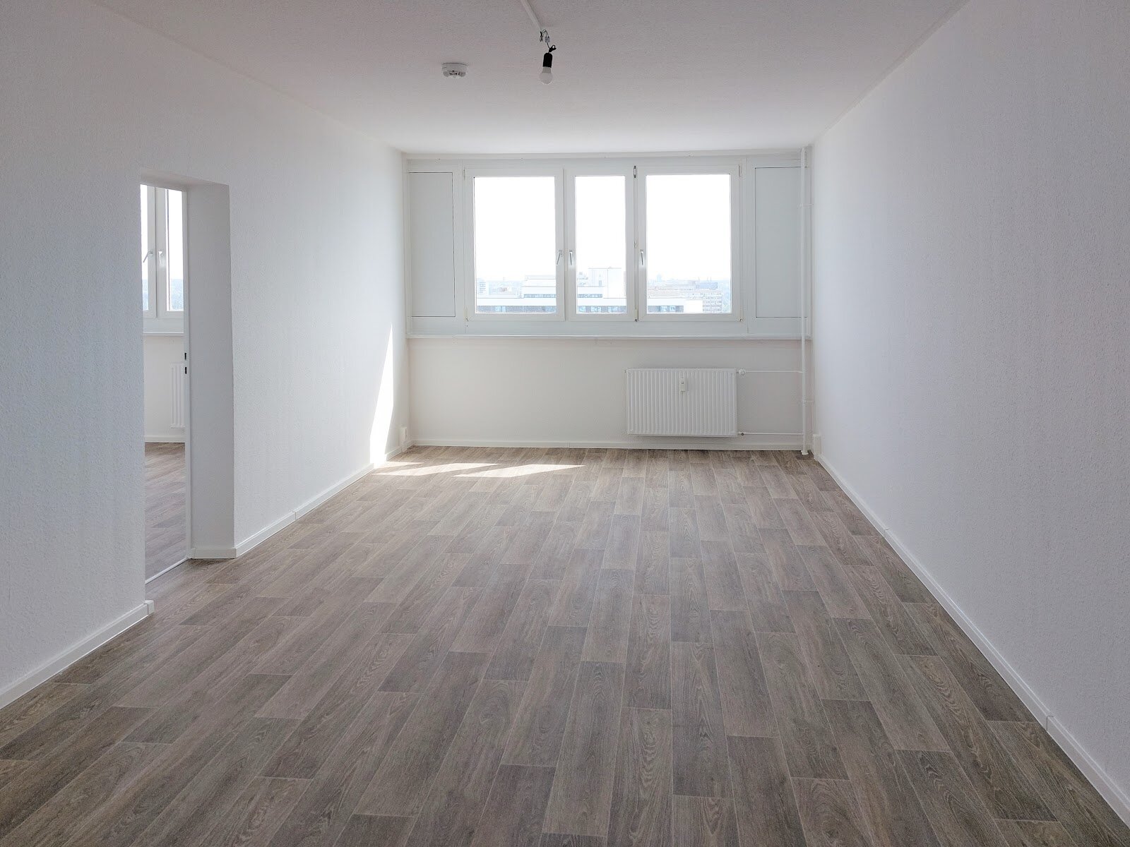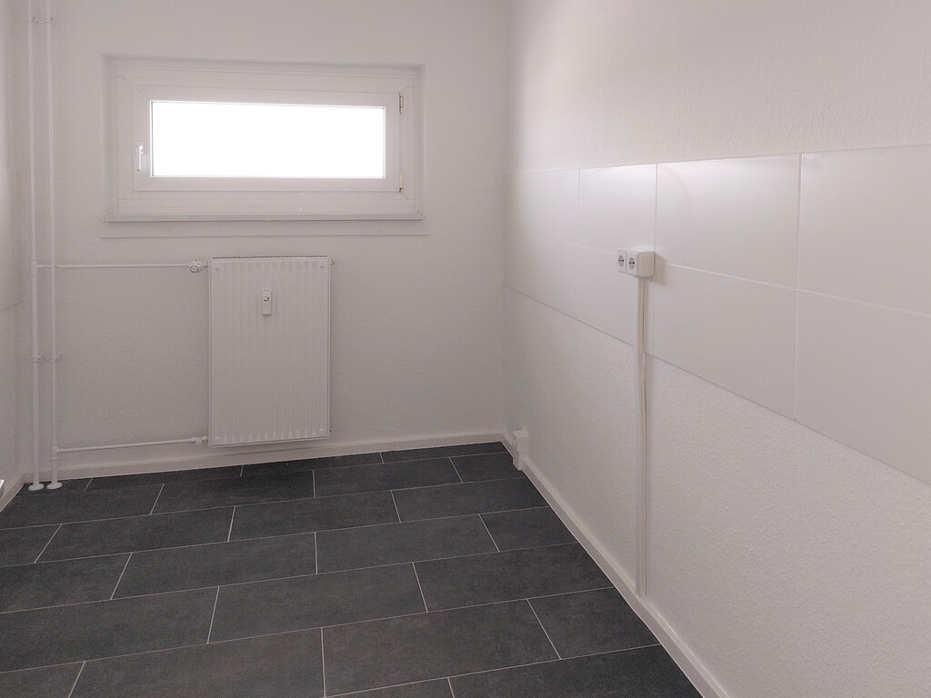 - PVC- Bodenbelag und Raufasertapete in den Wohnräumen