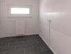 - Anthrazite Boden- und weiße Wandfliesen im Bad