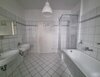 - Weiße Boden- und weiße Wandfliesen im Bad