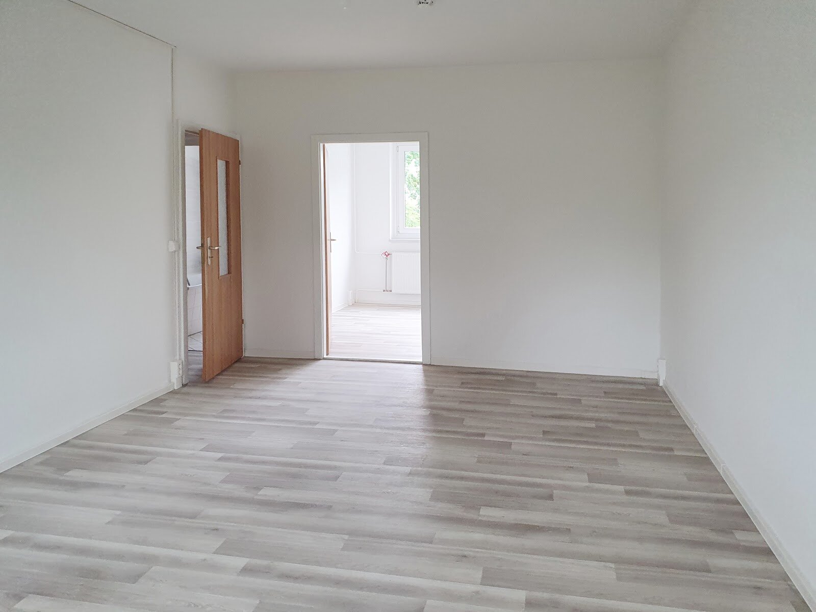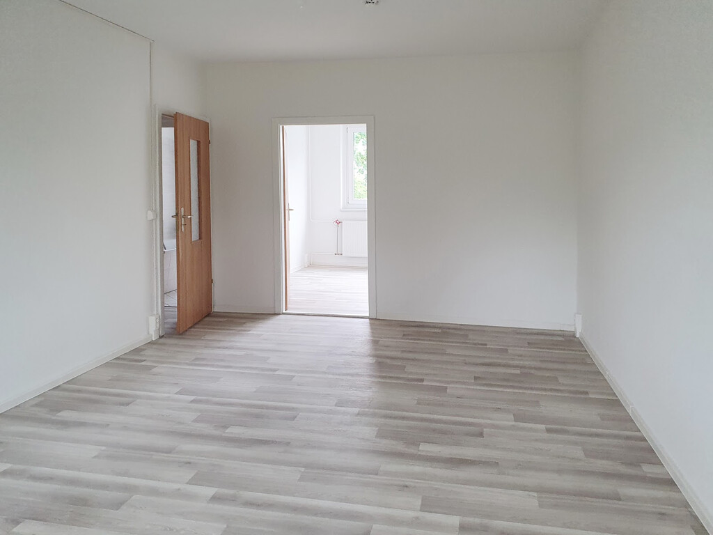 - PVC- Bodenbelag und Raufasertapete in den Wohnräumen