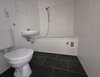 - Anthrazite Boden- und weiße Wandfliesen im Bad