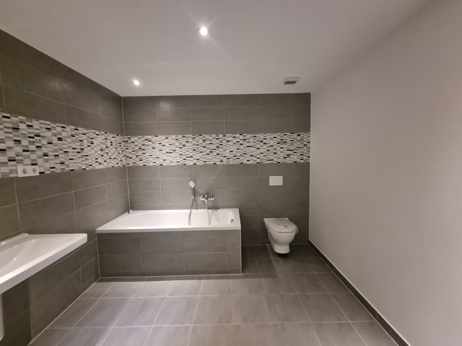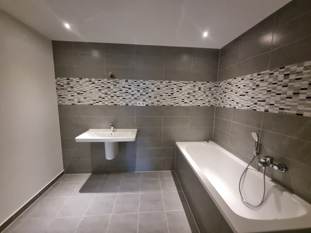 - Anthrazite Boden- und Wandfliesen im Bad