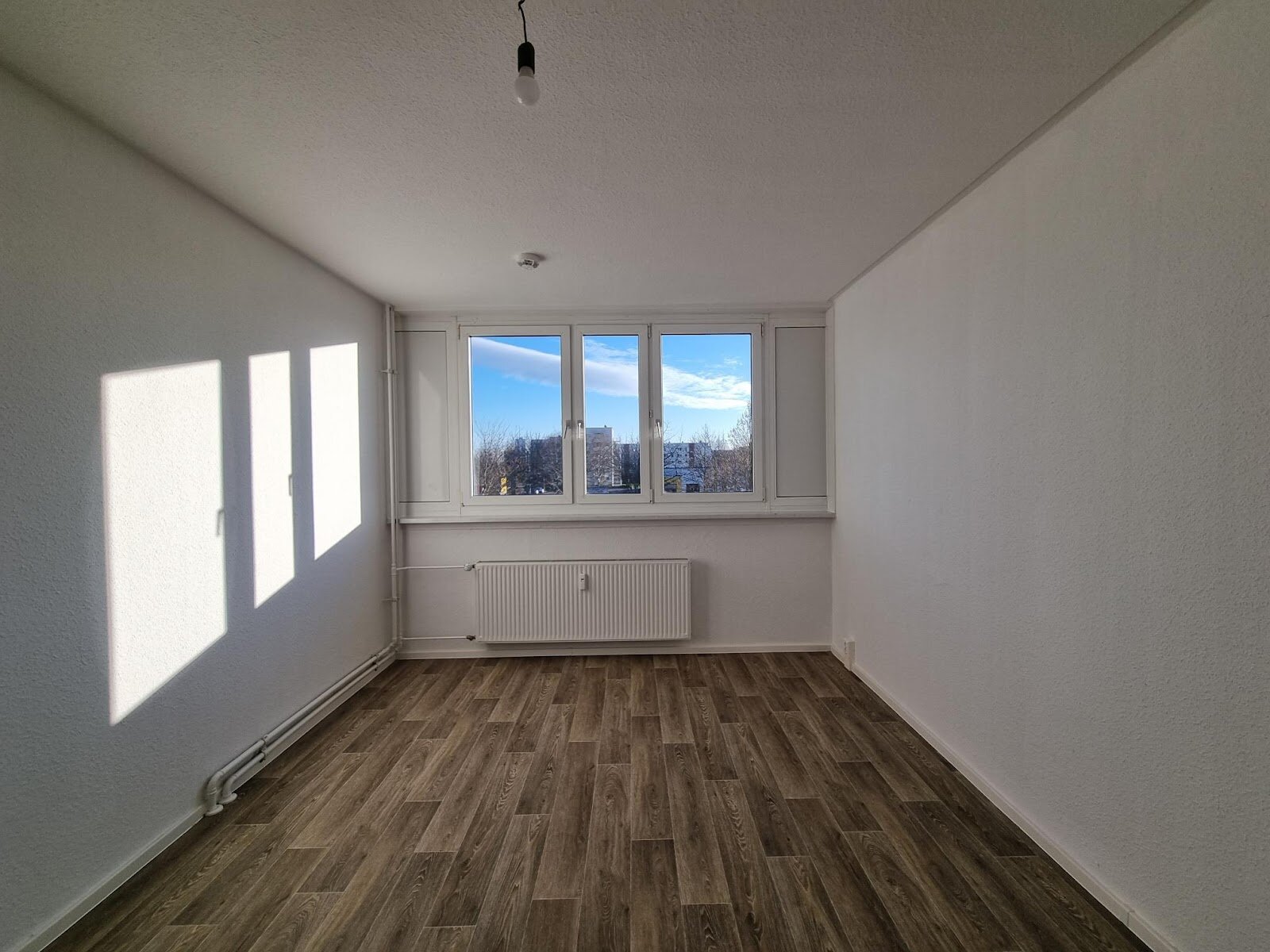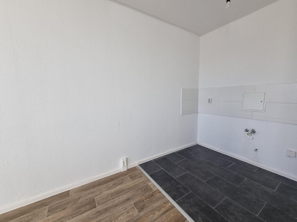 - PVC- Bodenbelag und Raufasertapete in den Wohnräumen