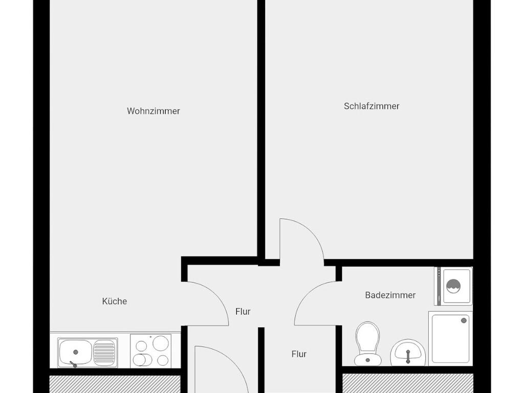 Die 2-Zimmer-Wohnung verteilt sich auf ca. 44 m²