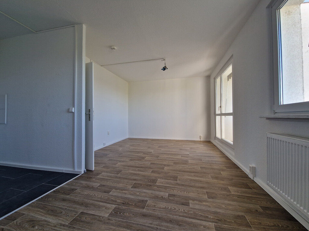 - PVC- Bodenbelag und Raufasertapete in den Wohnräumen