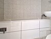- Weiße Boden- und weiße Wandfliesen im Bad
