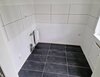 - Anthrazite Boden- und weiße Wandfliesen im Bad