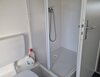 - Anthrazite Boden- und weiße Wandfliesen im Bad