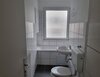 - Anthrazite Boden- und weiße Wandfliesen im Bad