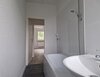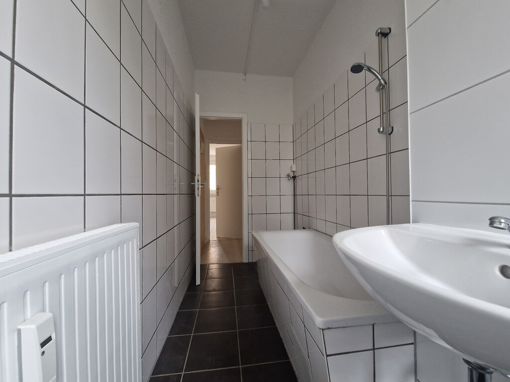 - Anthrazite Boden- und weiße Wandfliesen im Bad