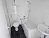 - Anthrazite Boden- und weiße Wandfliesen im Bad