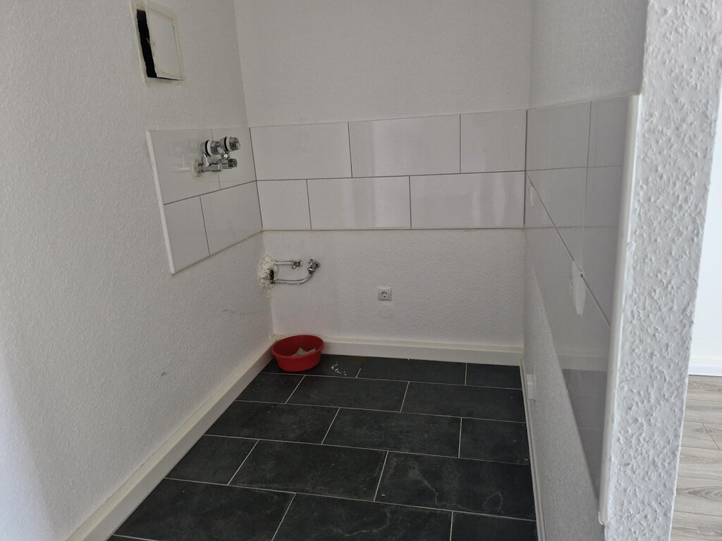 - Laminat/PVC- Bodenbelag und Raufasertapete in den Wohnräumen