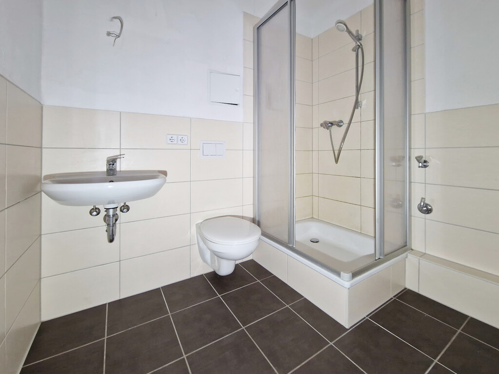 - Bad mit Dusche, Waschmaschinenanschluss und Handtuchwärmer