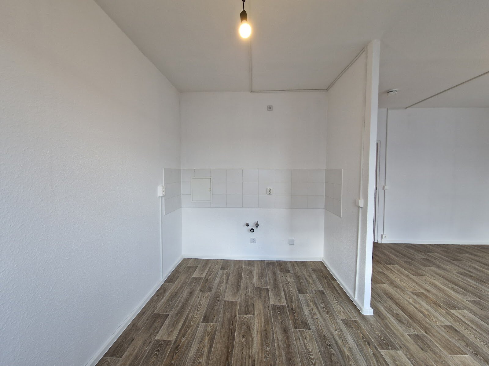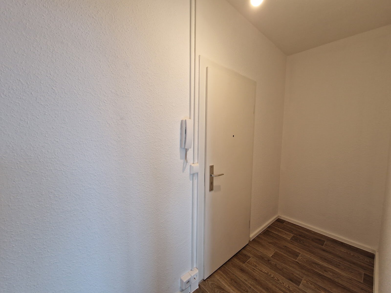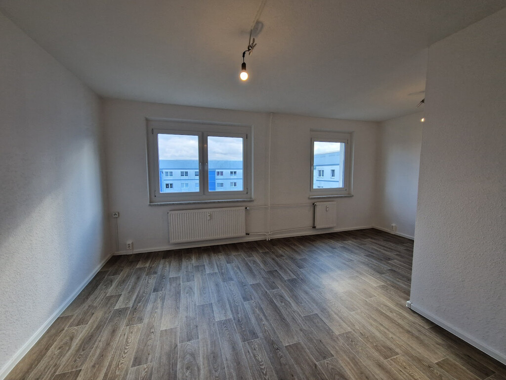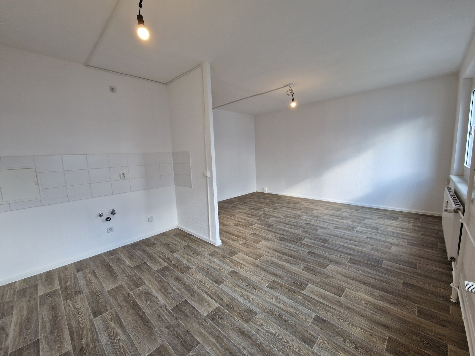 - Wohnbereich mit PVC-Boden und Raufasertapete – schlicht, pflegeleicht, bereit für Ihre Einrichtungsideen