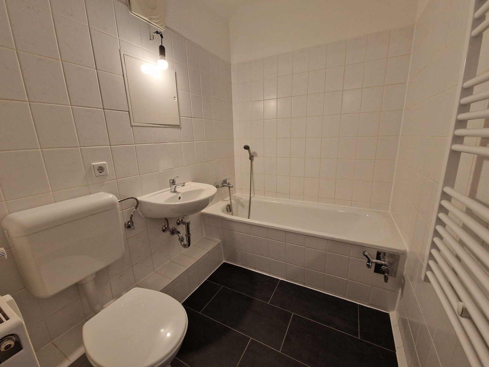 - Bad mit Badewanne und Waschmaschinenanschluss – praktisch & schick in Anthrazit und Weiß