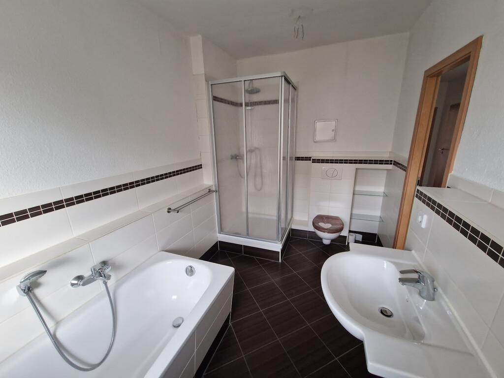 - Tageslichtbad mit Badewanne, Dusche und Waschmaschinenanschluss