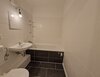 - Anthrazite Boden- und weiße Wandfliesen im Bad