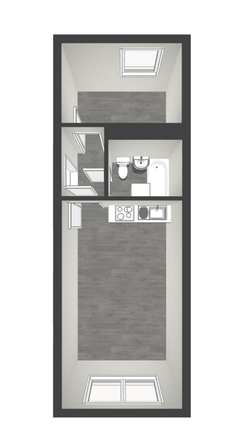 Die 1-Zimmer-Wohnung verteilt sich auf ca. 40 m²