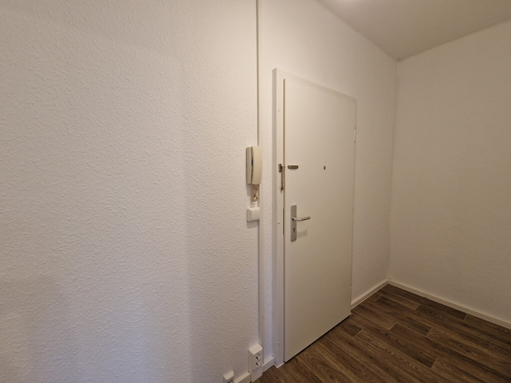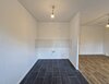 - Wohnbereich mit PVC-Boden und Raufasertapete – schlicht, pflegeleicht, bereit für Ihre Einrichtungsideen