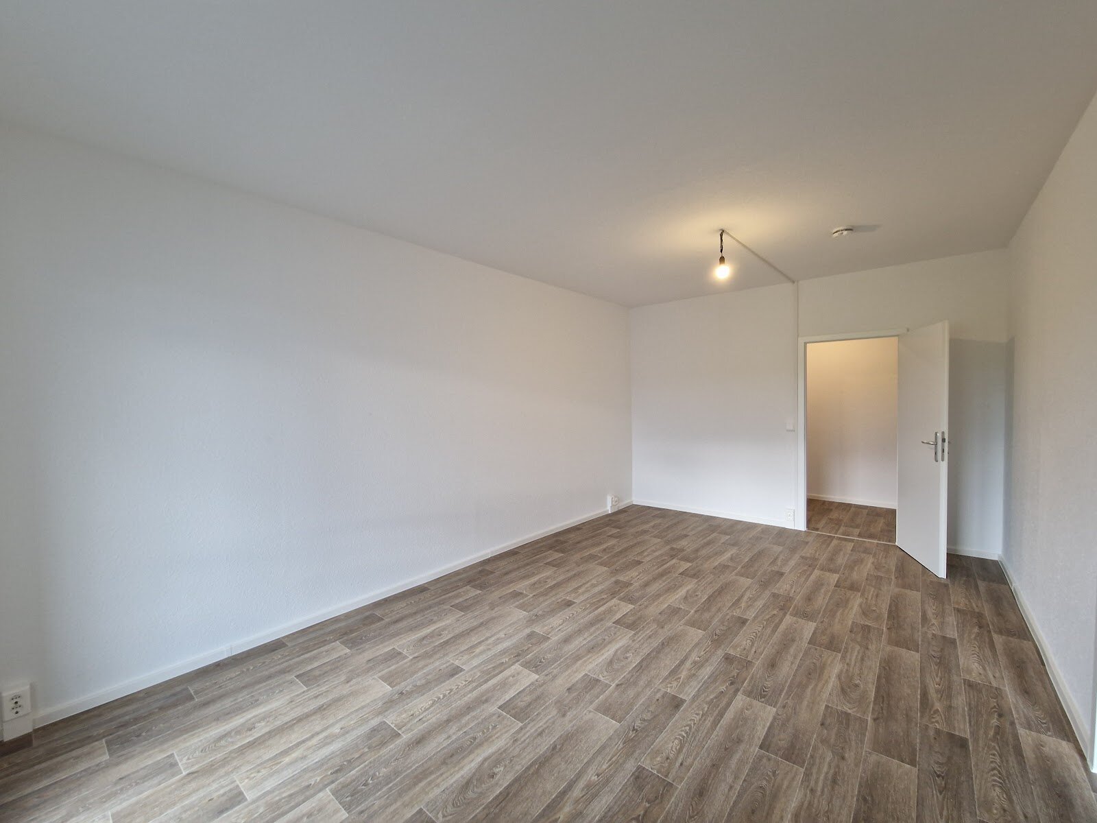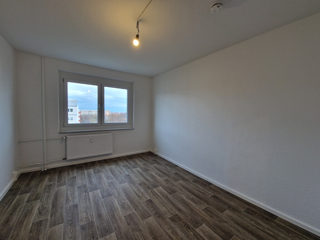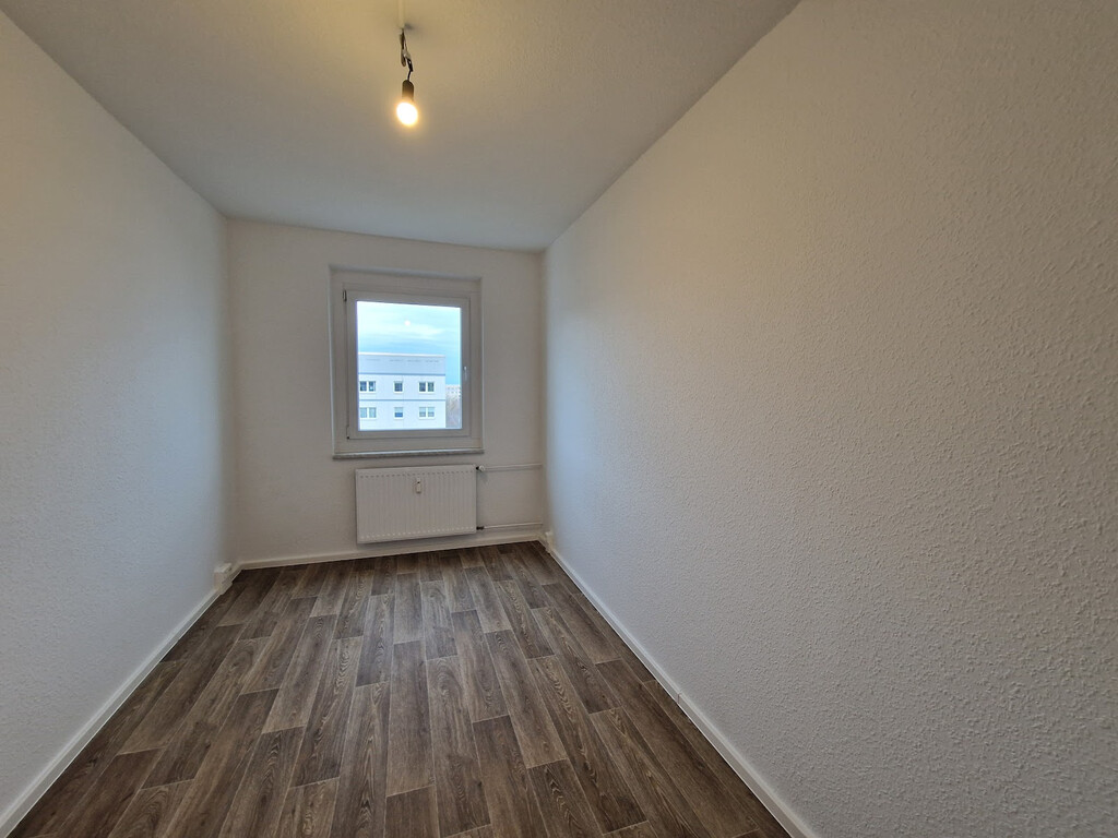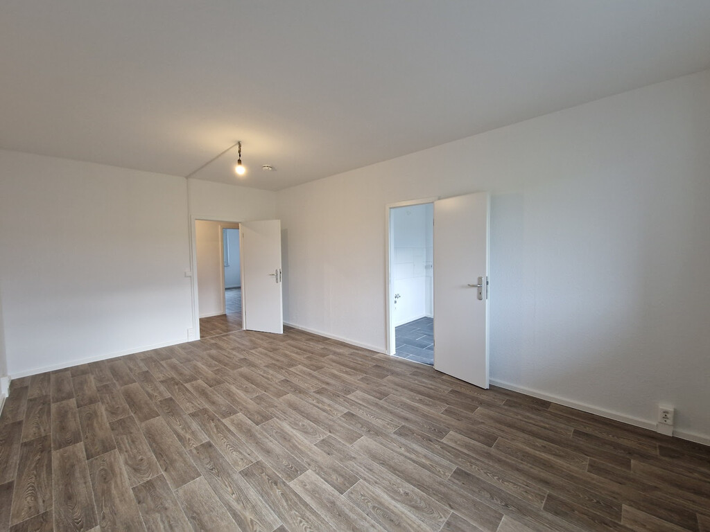 - Wohnbereich mit PVC-Boden und Raufasertapete – schlicht, pflegeleicht, bereit für Ihre Einrichtungsideen