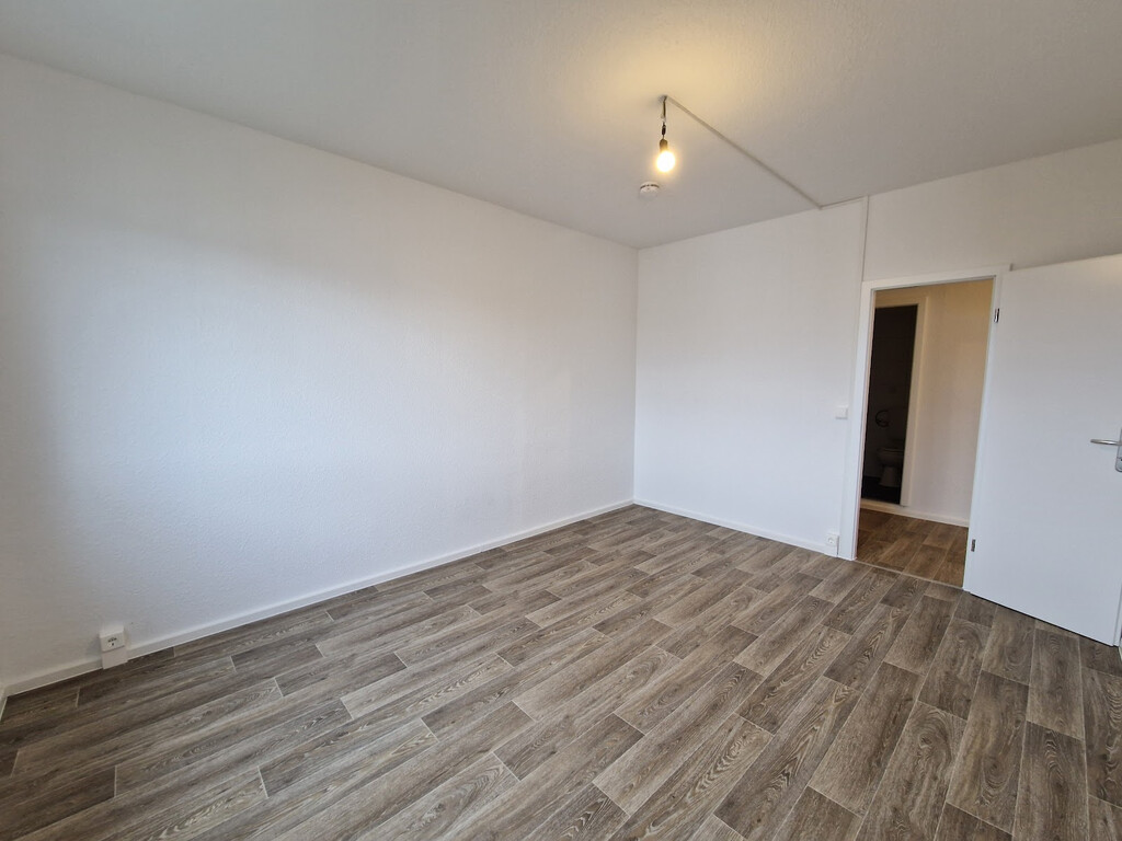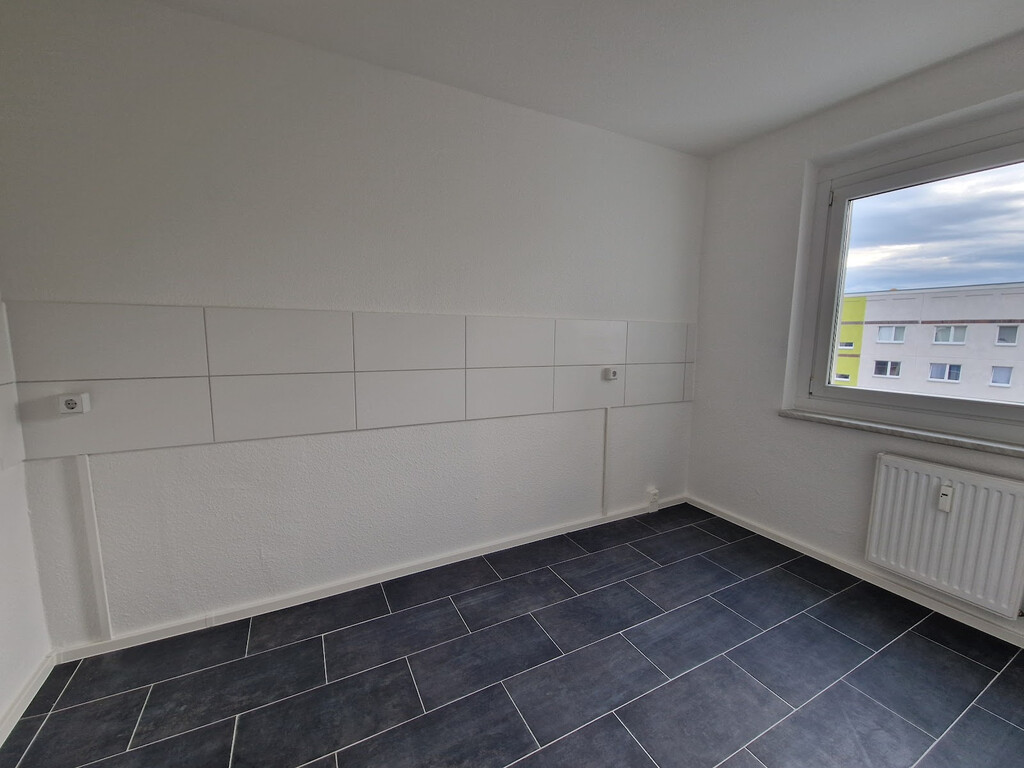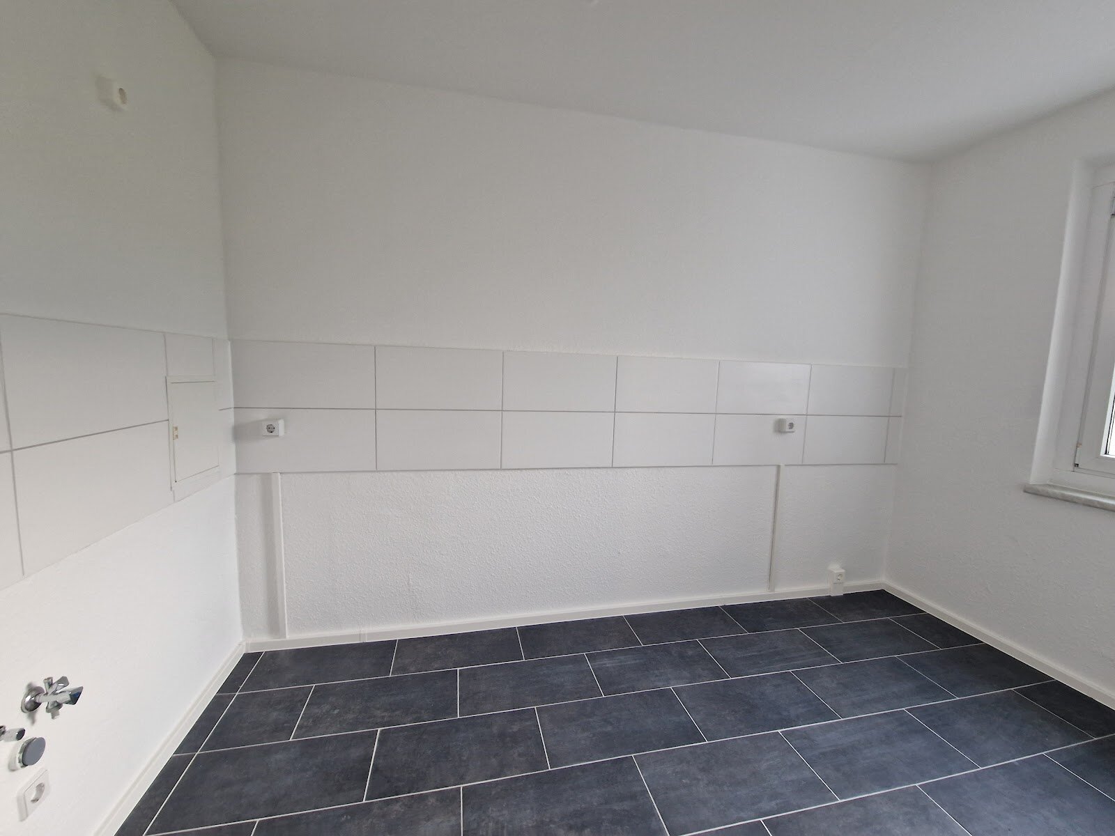 - Wohnbereich mit PVC-Boden und Raufasertapete – schlicht, pflegeleicht, bereit für Ihre Einrichtungsideen