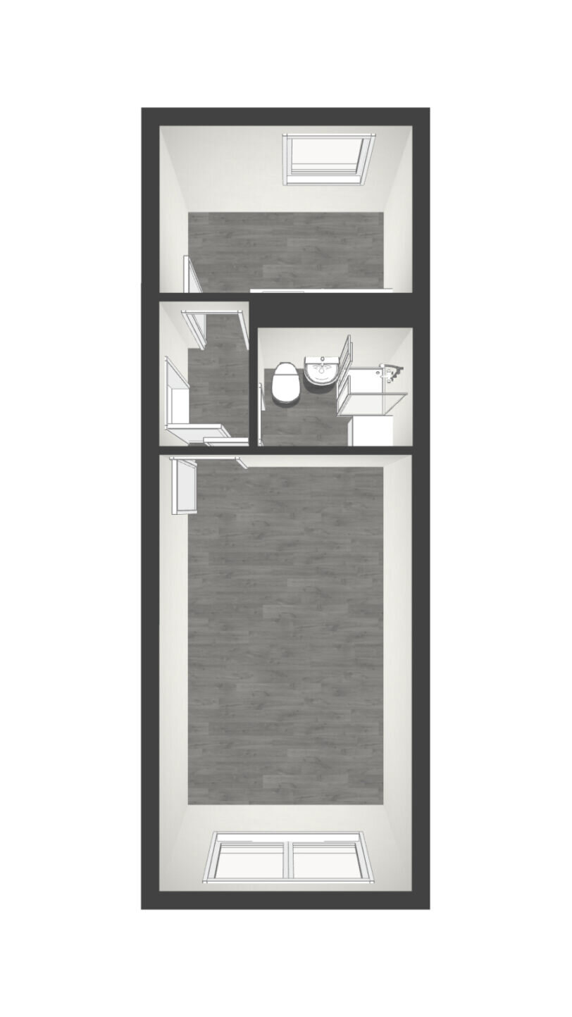 - Anthrazite Boden- und weiße Wandfliesen im Bad