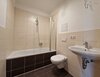- Anthrazite Boden- und weiße Wandfliesen im Bad