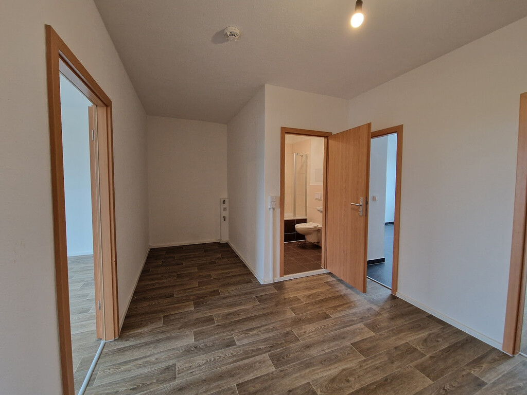 - PVC- Bodenbelag und Raufasertapete in den Wohnräumen