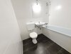- Anthrazite Boden- und weiße Wandfliesen im Bad