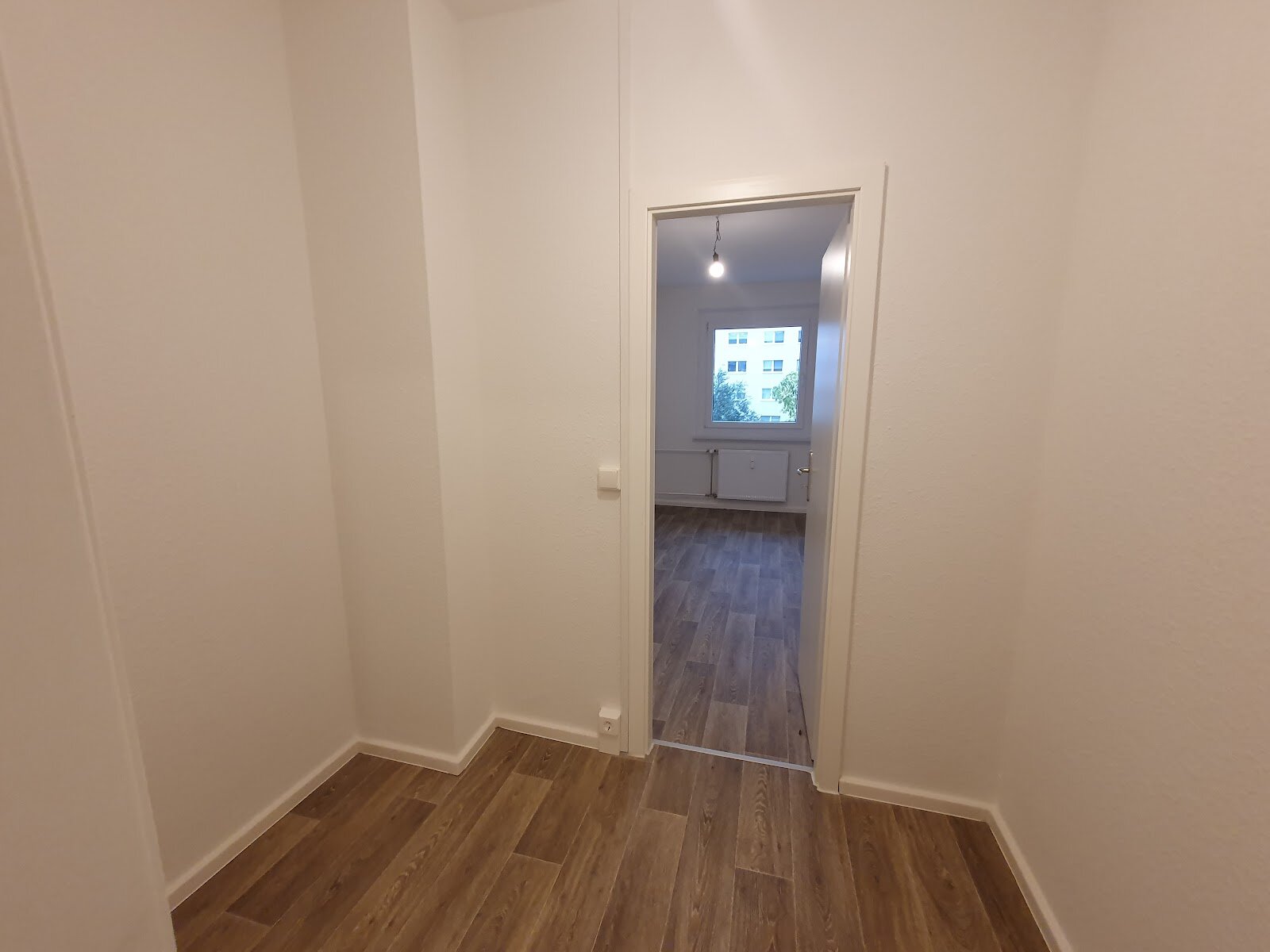 - Wohnbereich mit PVC-Bodenbelag und Raufasertapete – schlicht, pflegeleicht, bereit für Ihre Einrichtungsideen