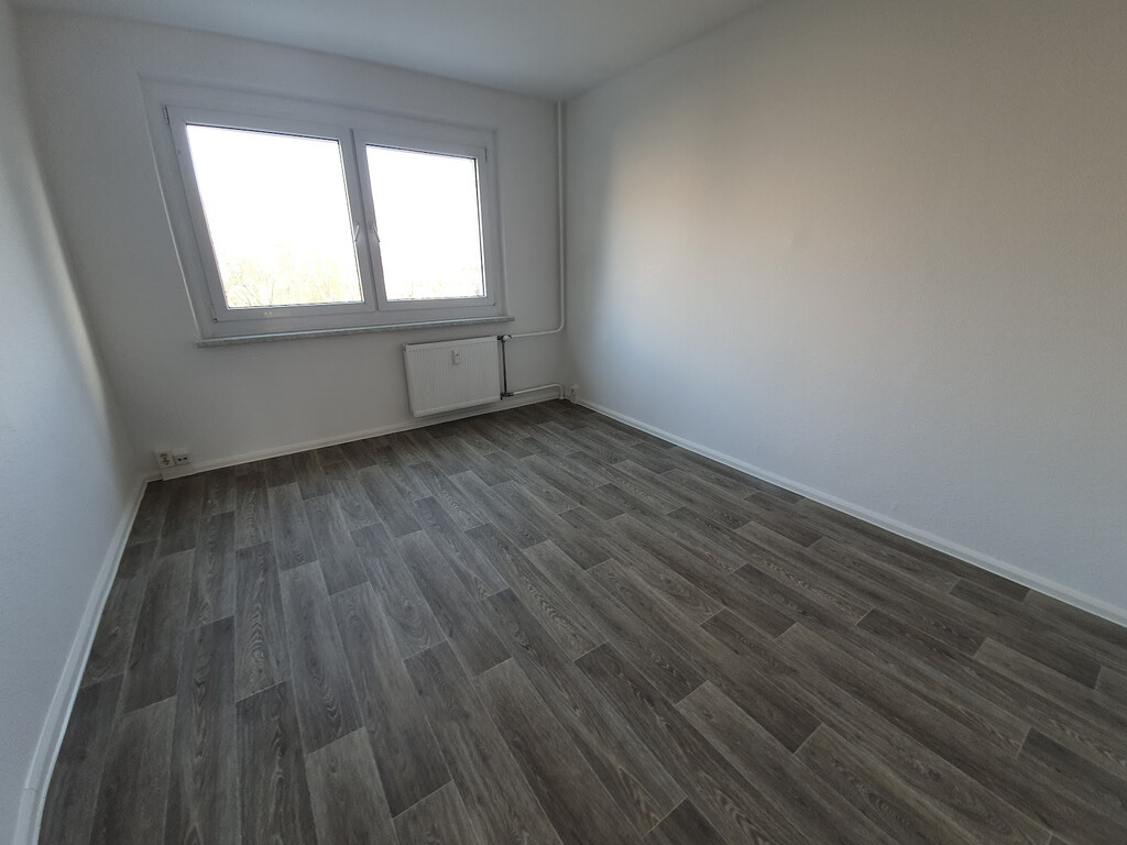 • Geräumiger Wohnbereich mit pflegeleichtem PVC-Bodenbelag und Raufasertapete – neutral gehalten und bereit für Ihre Einrichtungsideen