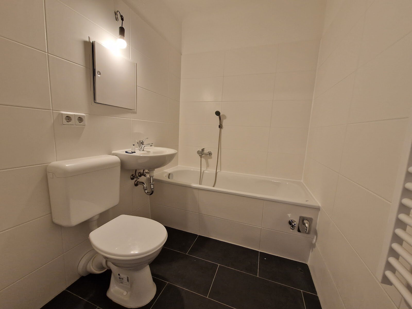 - Bad mit Badewanne und Waschmaschinenanschluss – praktisch & schick in Anthrazit und Weiß