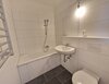 - Anthrazite Boden- und weiße Wandfliesen im Bad