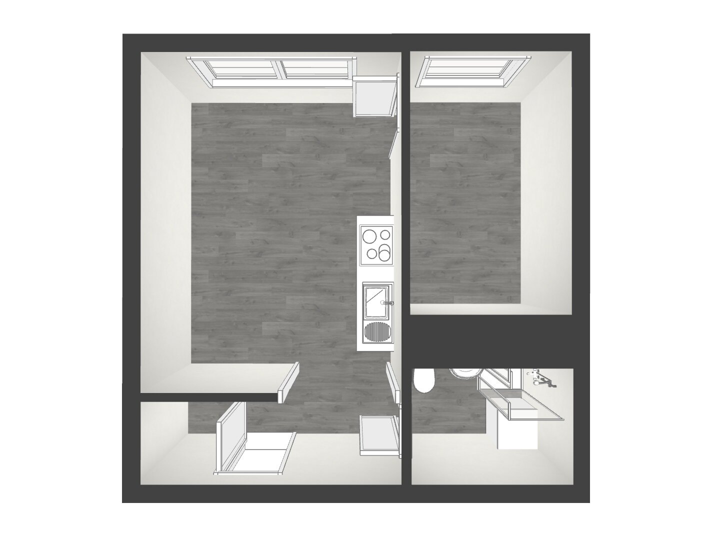 Die 2-Zimmer-Wohnung verteilt sich auf ca. 33 m²