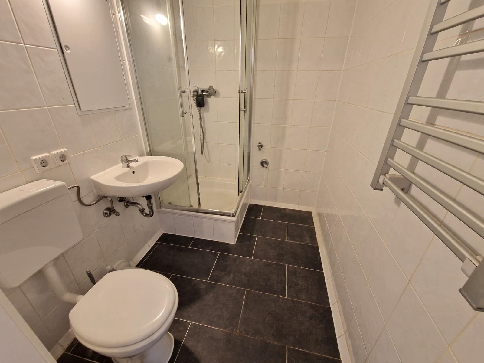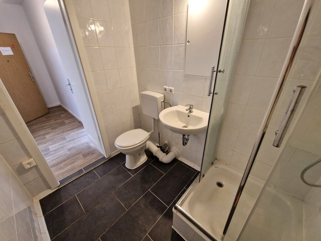 - Badezimmer mit Dusche und Waschmaschinenanschluss