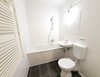 - Anthrazite Boden- und weiße Wandfliesen im Bad