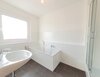 - Anthrazite Boden- und weiße Wandfliesen im Bad