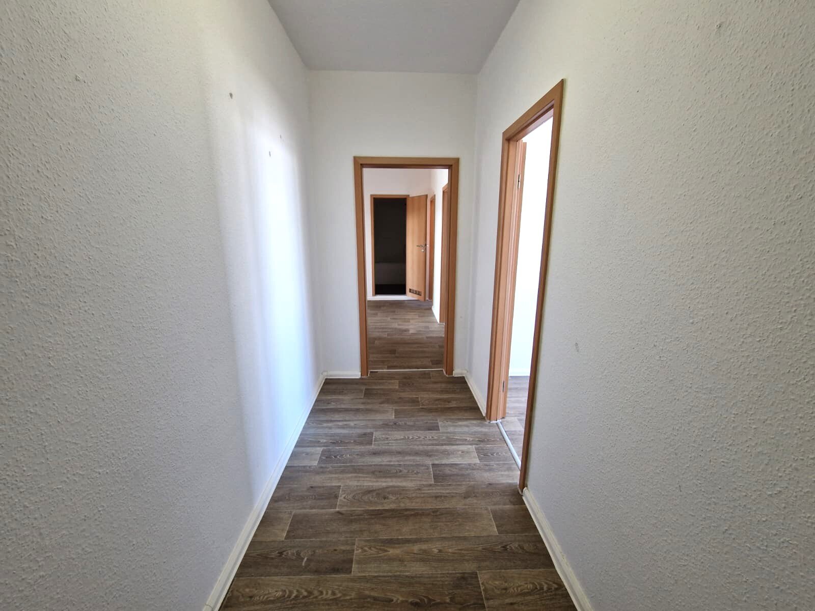 - PVC- Bodenbelag und Raufasertapete in den Wohnräumen