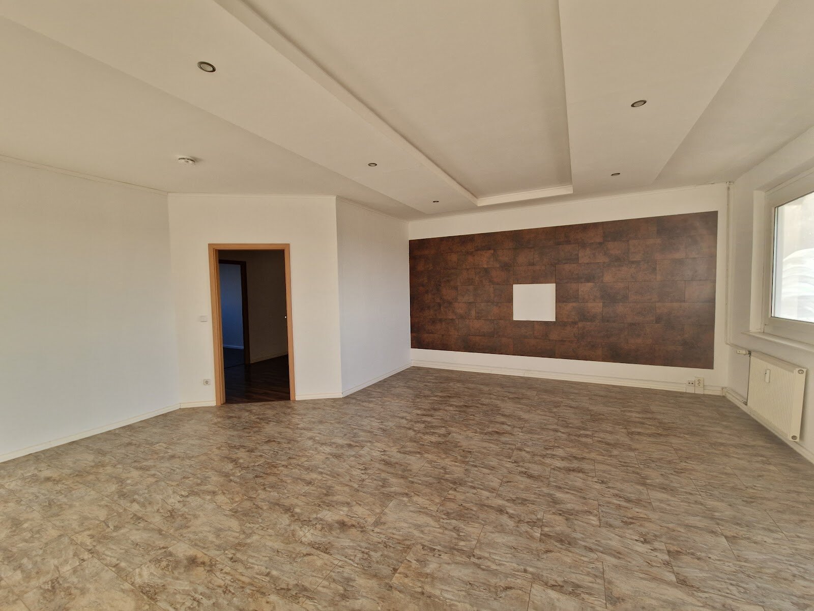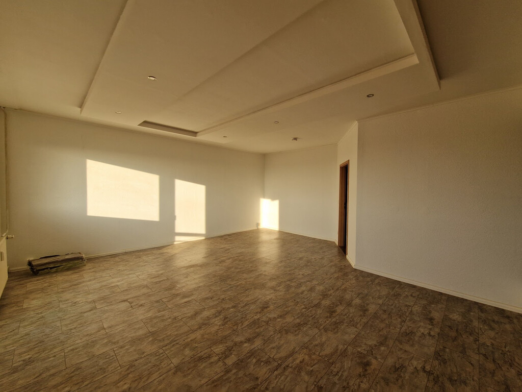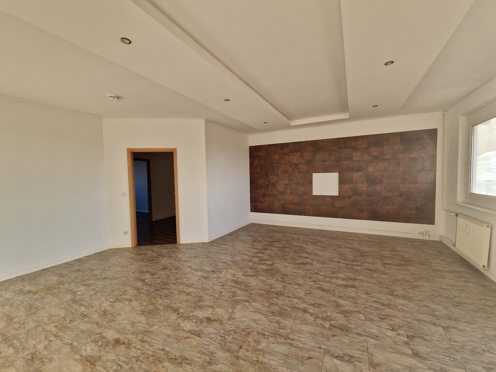 - Wohnbereich mit Laminat-Boden und Raufasertapete – schlicht, pflegeleicht, bereit für Ihre Einrichtungsideen
