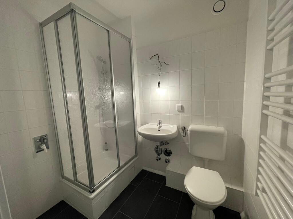 - Modernes Bad mit Dusche und Waschmaschinenanschluss – praktisch & schick in Anthrazit und Weiß