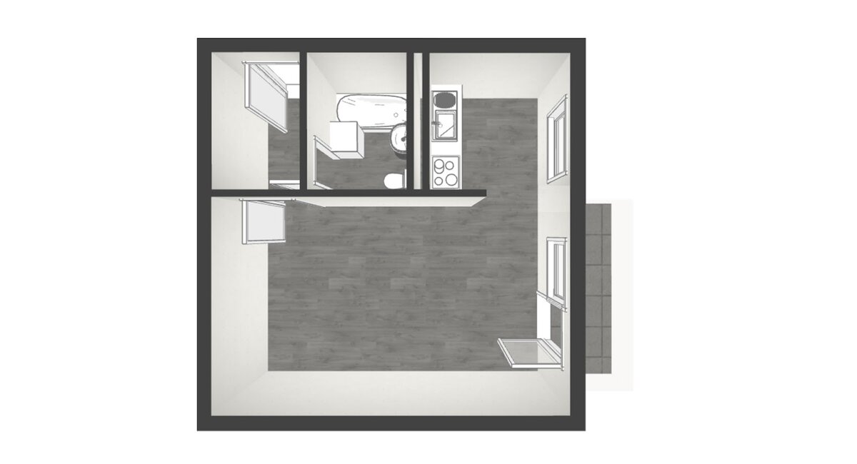 Die 1-Zimmer-Wohnung verteilt sich auf ca. 33 m² clever genutzt – perfekt für Minimalisten, Pendler oder den ersten eigenen Rückzugsort. Ein Personenaufzug bringt Sie bequem in die gewünschte Etage.