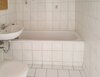 - Weiße Boden- und weiße Wandfliesen im Bad